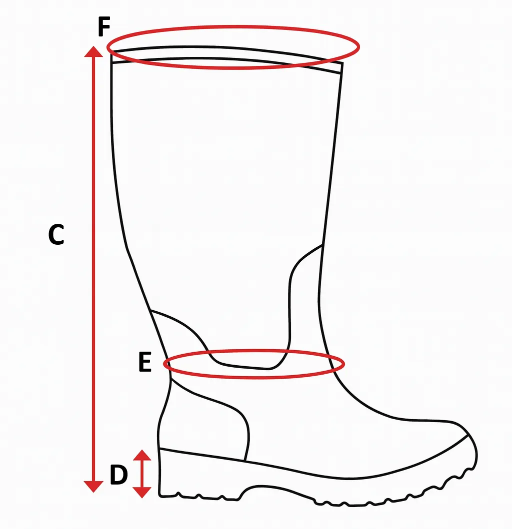 F Circumferința în partea superioară a tijei-Exterior 39,5 cm 40 cm 40,5 cm 41,5 cm 42,5 cm