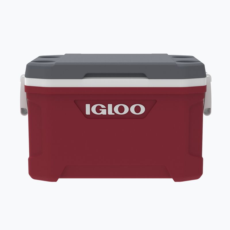 Igloo Latitude 52 - partenerul ideal pentru expediții. Mânerele rabatabile, un cordon bungee pentru echipament suplimentar, băuturi reci cu suporturi automate pentru căni. Frigiderul poate încăpea până la 85 de doze.