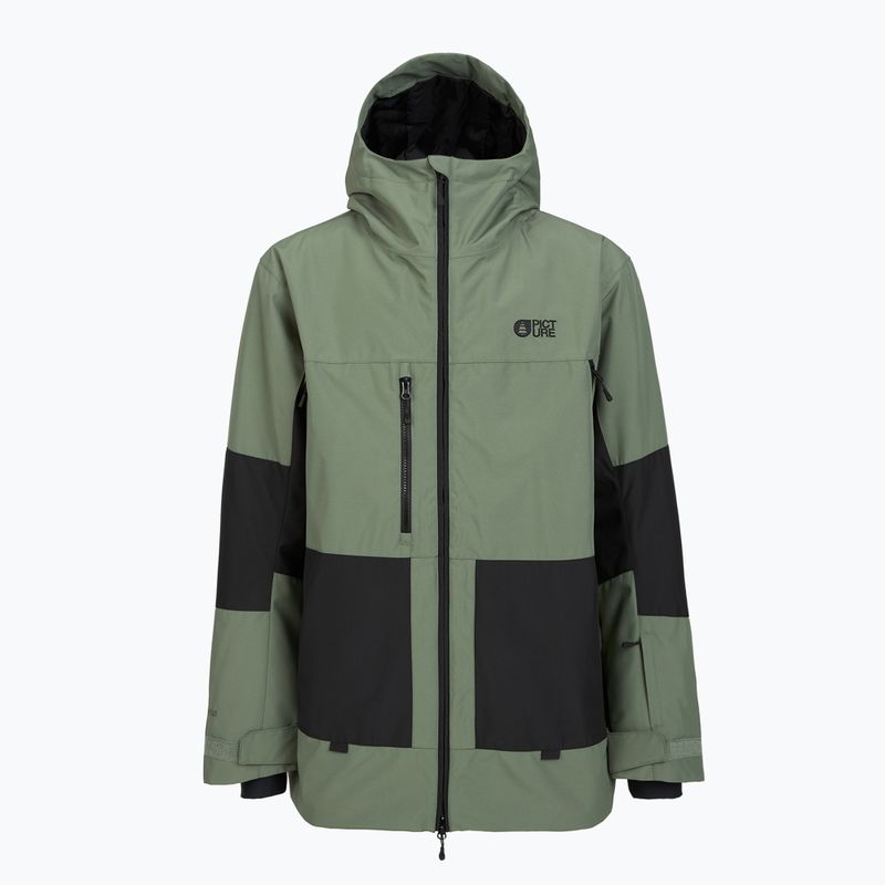 Geacă de schi pentru bărbați Picture Jomoh 10/10, proiectată pentru pârtie. Membrana Dryplay 10K și stratul hidrofob Teflon Ecoelite™ protejează împotriva umezelii, iar certificările GRS și Oeko-Tex® confirmă producția ecologică. Are braț integrat de zăpadă, glugă ajustabilă și fermoare de ventilație.