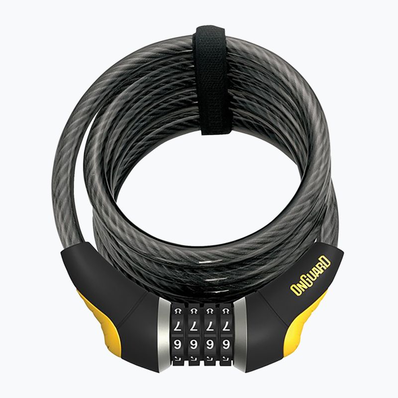 Încuierea bicicletei OnGuard Doberman 8031L este un cablu de oțel spiralat cu un sistem de închidere cu cod, rezistent la tăiere și la fierăstrău. O manta robustă din vinil protejează împotriva zgârieturilor, iar ariciul inclus în set facilitează fixarea cablului răsucit.