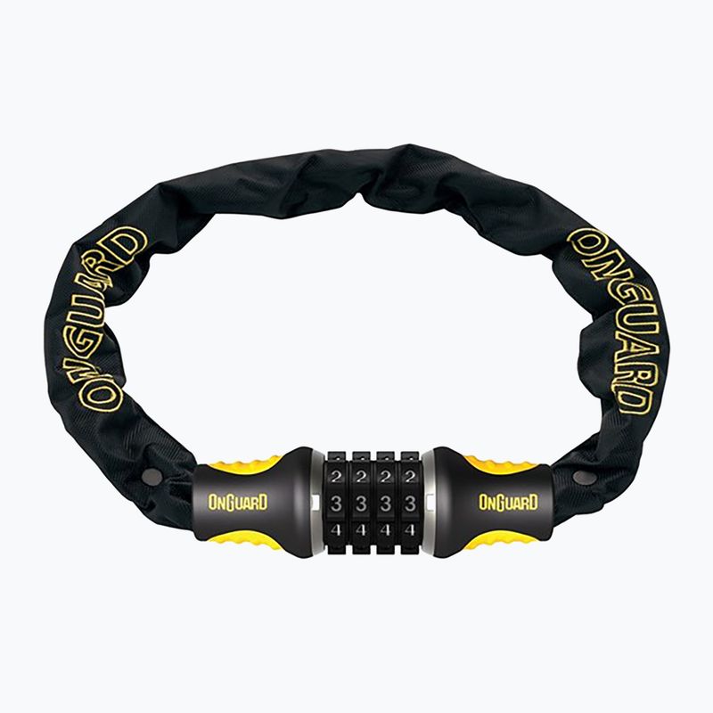 Încuierea pentru bicicletă OnGuard MASTIFF 8124 este un lanț cu linkuri de 8 mm din oțel tratat termic întărit cu titan, dotat cu un mecanism de închidere SBC. Suprafața din cauciuc a încuietorii oferă o prindere confortabilă și protecție împotriva șocurilor și zgârieturilor.
