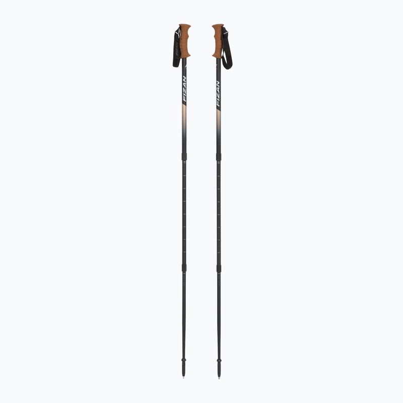 Bețele Fizan Tierra sunt un model unic cu mâner din plută. După pliere, au doar 63 cm, iar după desfășurare ating 140 cm. Sunt compuse din trei secțiuni (18/16/14 mm) și cântăresc 226 g. Echipate cu sistem de reglare Flexy, talere de 50 mm și vârf metalic cu protecții.