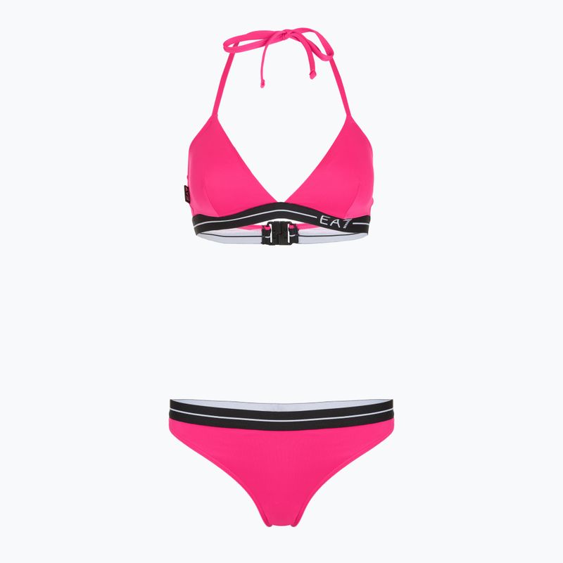 Costum de baie două piese pentru femei EA7 Emporio Armani Logo Tape Bikini Triangle neon pink - caracteristici: