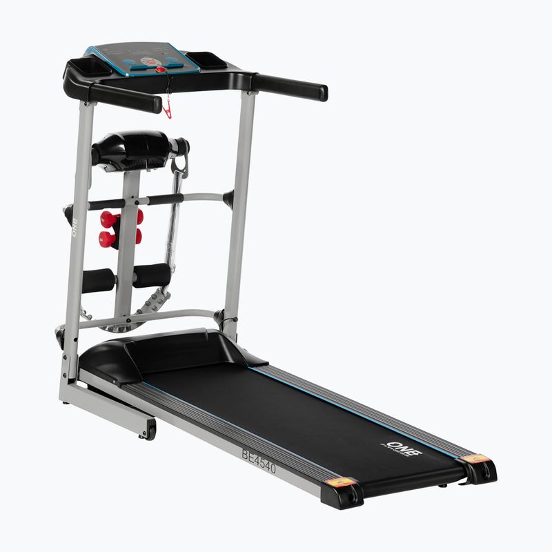 Treadmill electric HMS BE4540 One este un echipament compact pentru antrenament acasă. Este dotat cu un bandă antiderapantă, reglare automată a vitezei, sistem de amortizare și difuzoare încorporate cu port audio. În set este inclus un masajer care sprijină regenerarea mușchilor.
