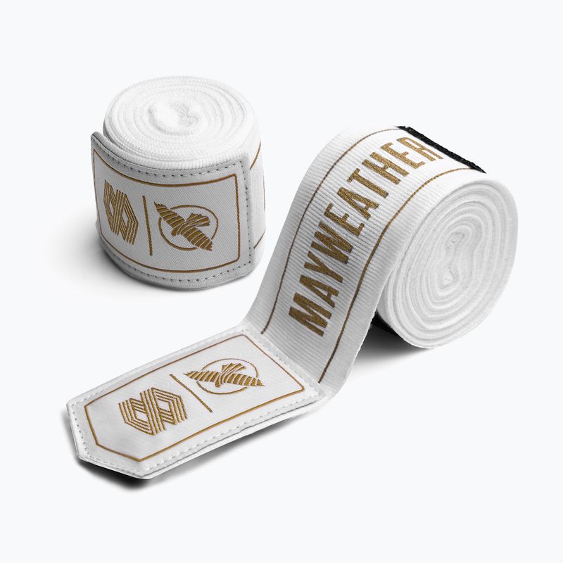 Învelișuri de box Hayabusa Mayweather Stretch Hand Wraps 450 cm white/gold (MWHW-WHGD)