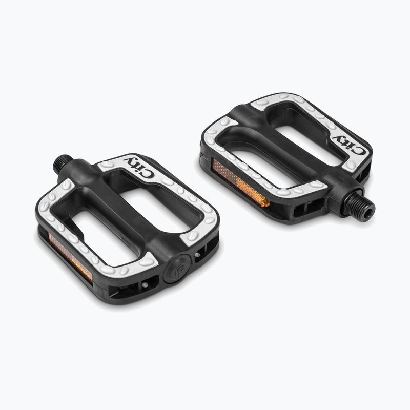Pedalierile KROSS City Antyslip sunt o soluție practică și sigură pentru bicicletele urbane. Realizate dintr-un material durabil cu un mat anti-derapant, asigură o prindere sigură a piciorului, iar reflectoarele încorporate sporit vizibilitatea și securitatea în timpul mersului pe bicicletă.