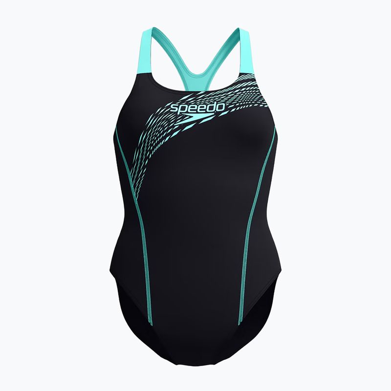 Costumul de baie întreg pentru femei Speedo Medley Logo Medalist arctic glass este echipat cu tehnologia avansată Endurance+. Datorită acesteia, costumul se caracterizează printr-o rezistență crescută la acțiunea clorului și a razelor solare, ceea ce prelungește semnificativ durata sa de viață și menține intensitatea culorilor. În plus, această tehnologie asigură uscare rapidă a materialului, ceea ce crește confortul utilizării după încheierea antrenamentului.
