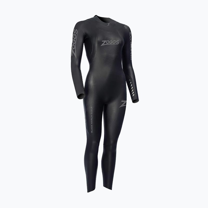 Costumul de înot pentru femei Zoggs Black Marlin Tri 5/3/1,5 mm este o salopetă avansată de start pentru crawl și triatlon. Neoprenul elastic cu compresie la miez, panourile de 5 mm pentru flotabilitate și cele de 1,5 mm la umeri asigură libertatea de mișcare și hidrodinamica.