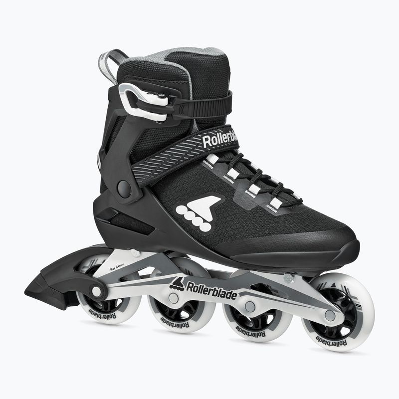 Rolele sportive bărbaști Rollerblade Macroblade 80 negru/gri sunt echipate cu trei tipuri de închideri: curea cu arici, cataramă și șireturi. Această soluție permite o potrivire precisă la picior, minimizând riscul deplasării încălțămintei în timpul plimbării. Stabilitatea și siguranța utilizatorului sunt întărite de asemenea prin prezența unei frâne, care este esențială pentru controlarea vitezei și oprirea în orice moment. Profilul rotund al roților sprijină în plus fluiditatea mișcărilor pe suprafețele asfaltate și betonate.
