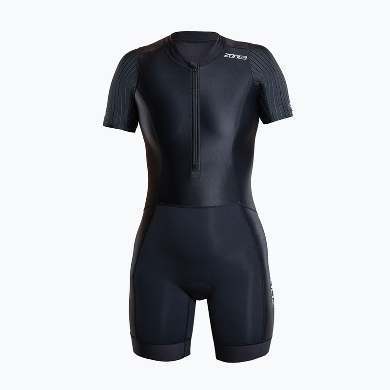 Costumul de triatlon pentru femei ZONE3 Activate+ Trisuit este o ținută ușoară și ajustată pentru start, cu mânecă scurtă, realizată din materiale de înaltă calitate. Materialul care se usucă rapid, croiala ergonomic și buzunarele asigură confort și practică în timpul înotului, ciclismului și alergării.