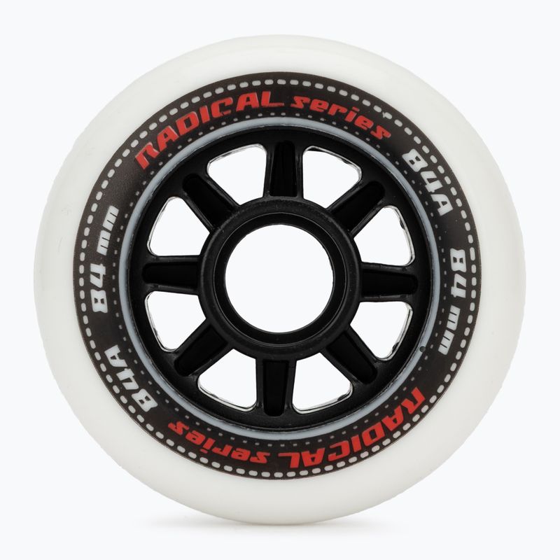 Roti pentru role Tempish Radical 84 mm/84A – set de 4 roti de înaltă calitate, cu duritate medie și diametru mai mare, care asigură o plimbare lină, viteză bună și aderență pe diferite suprafețe, ideale pentru plimbări urbane, recreație și trasee mai lungi.