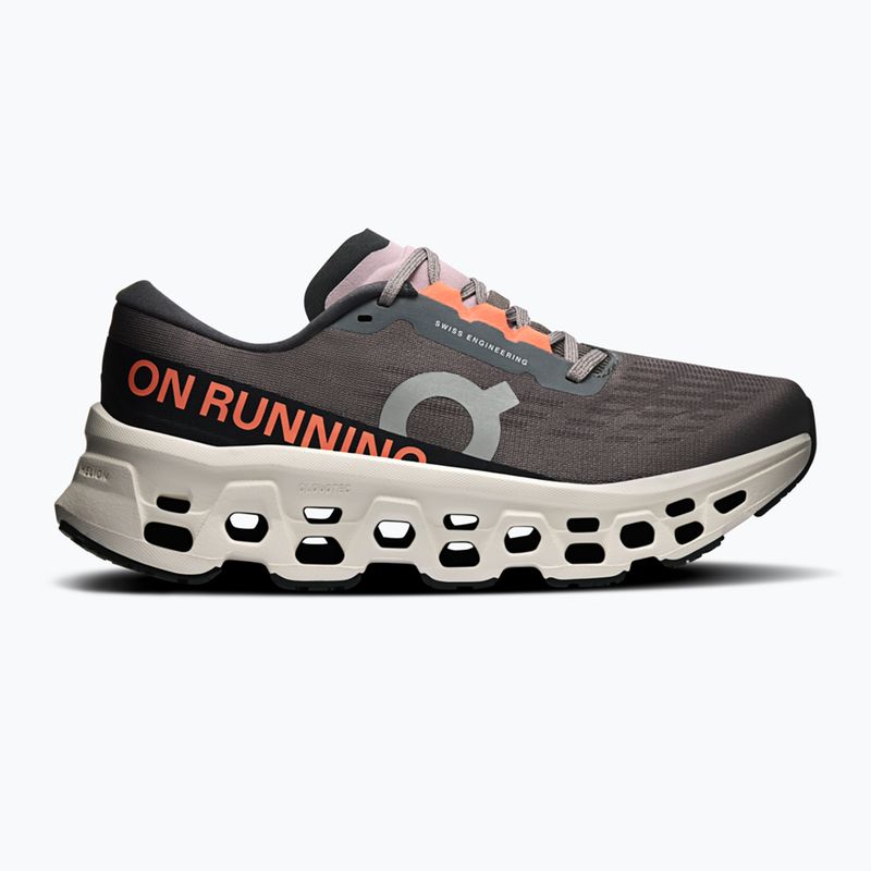 Încălțăminte de alergare pentru femei On Cloudmonster 3 oferă un confort exceptional și o răspuns elastic datorită tehnologiei CloudTec® și a spumei Helion™. Partea superioară respirabilă stabilizează piciorul, iar rockerul agresiv facilitează o tranziție fluidă și susține un ritm rapid pe asfalt.
