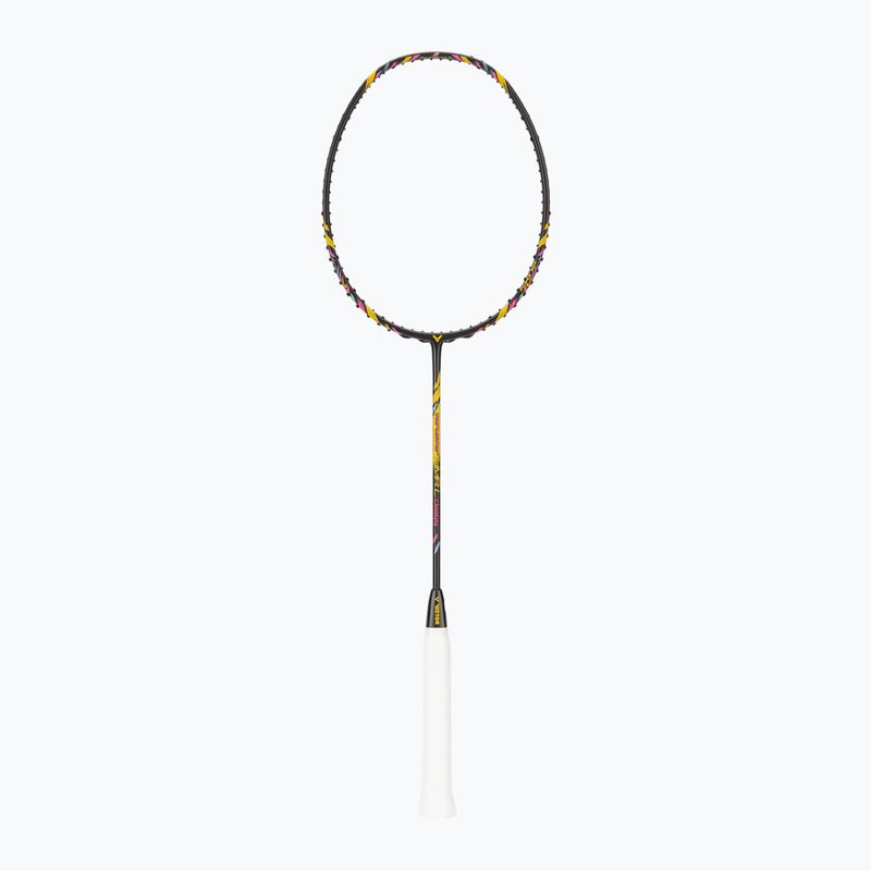 Racheta de badminton VICTOR Thruster HMRL Chocolate W este un model ușor ofensiv, cu un echilibru pe vârf și un shaft flexibil. Oferă o generare ușoară a puterii, manevrabilitate rapidă și un control bun în timpul jocului dinamic.